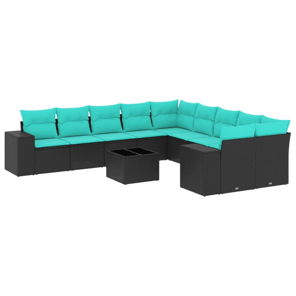 11-teiliges Gartensofa-Set mit Kissen, schwarzes Polyrattan