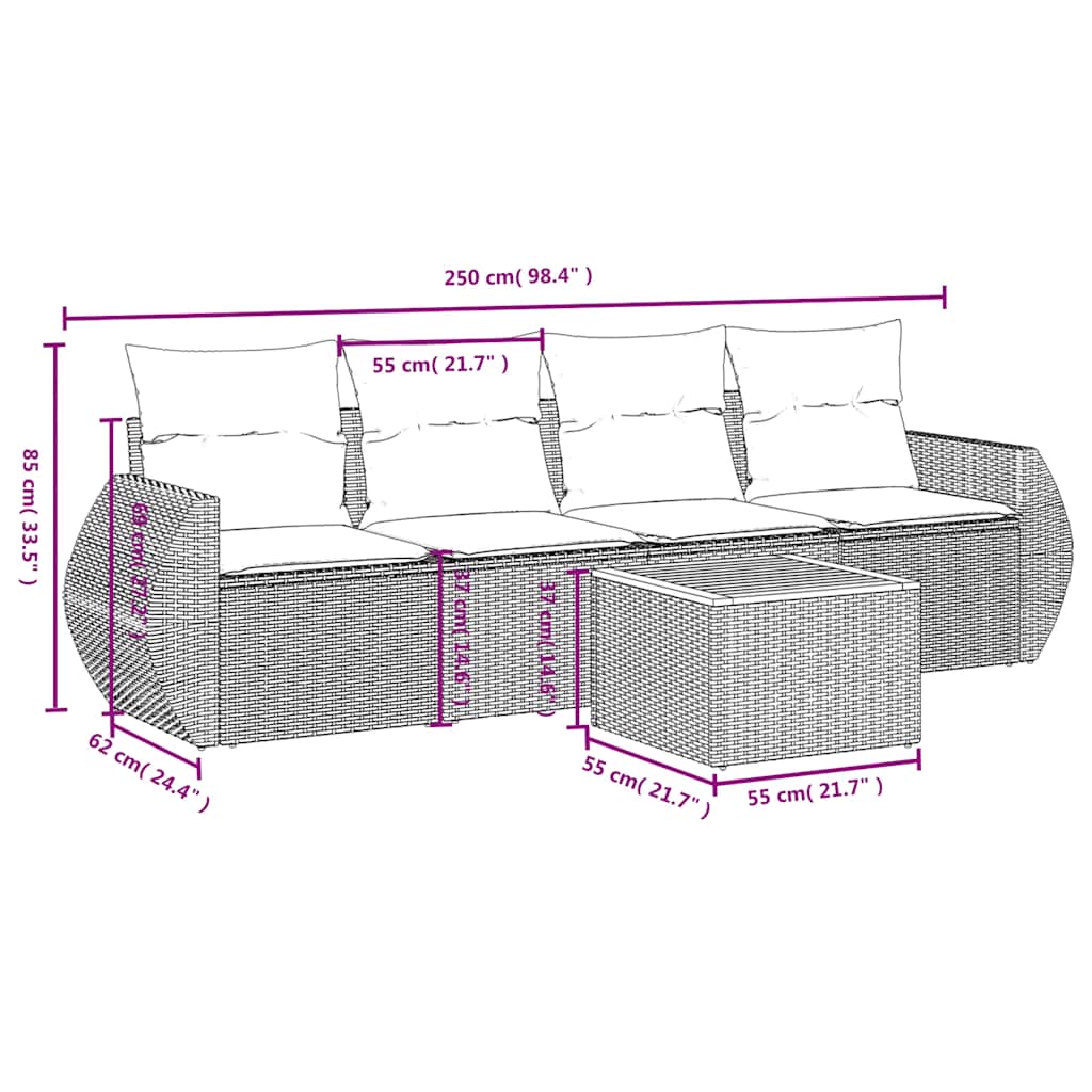5-teiliges Gartensofa-Set mit Kissen, schwarzes Polyrattan