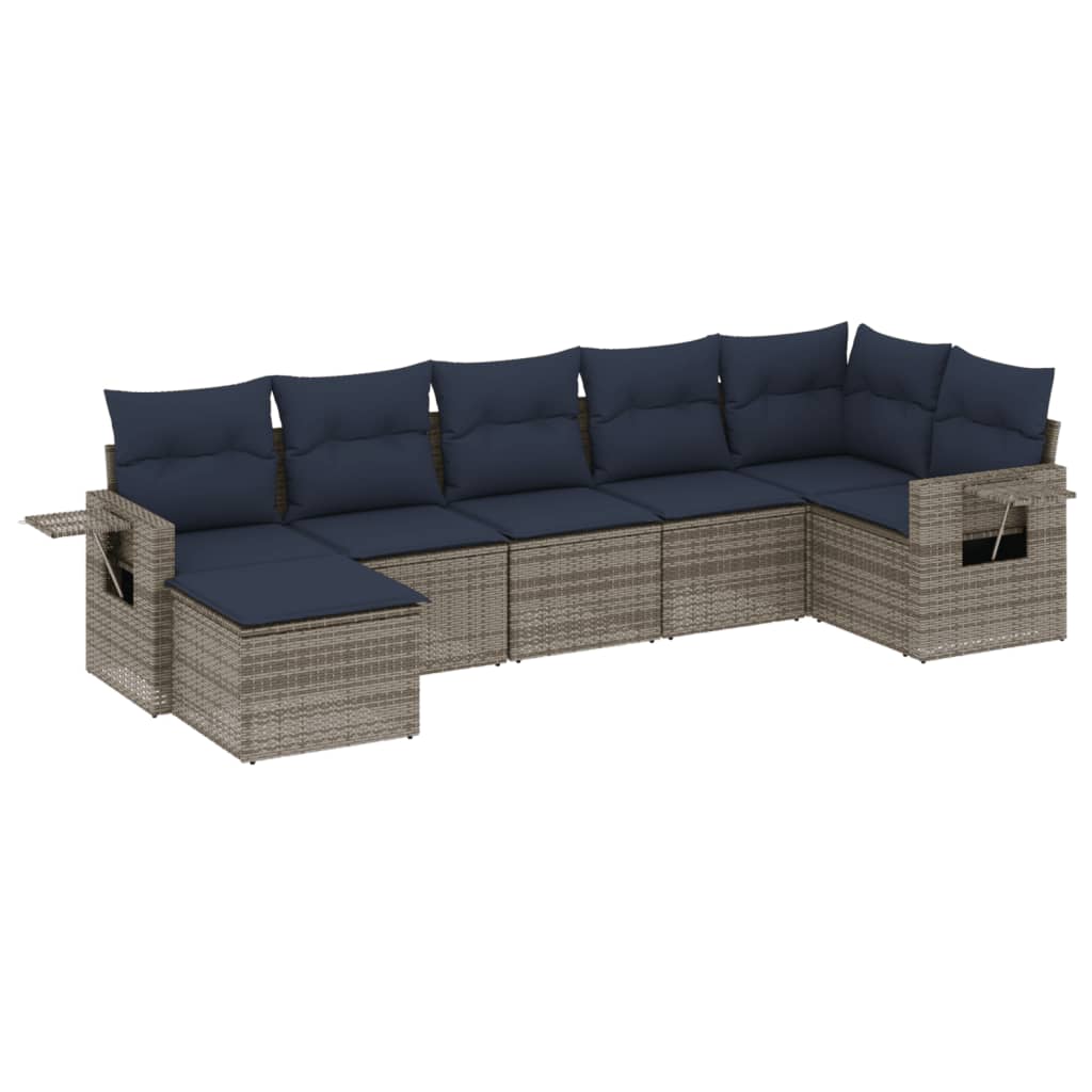 7-teiliges Gartensofa-Set mit Kissen, grau, Polyrattan