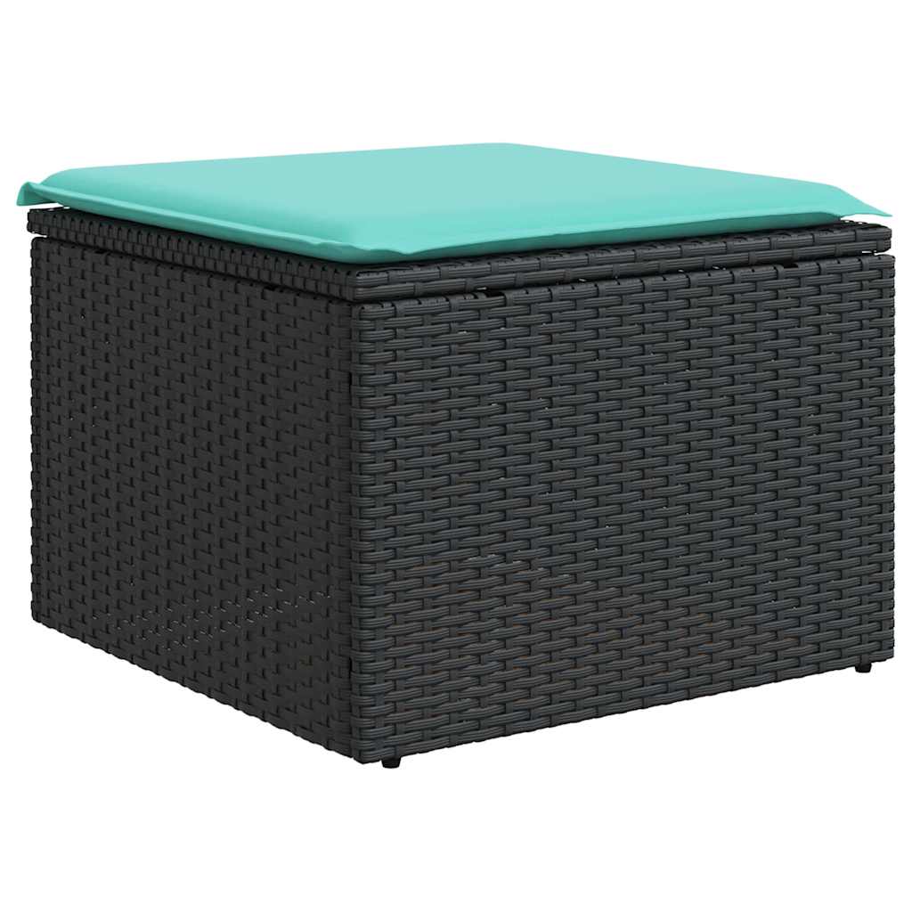 9-teiliges Gartensofa-Set mit Kissen, schwarzes Polyrattan