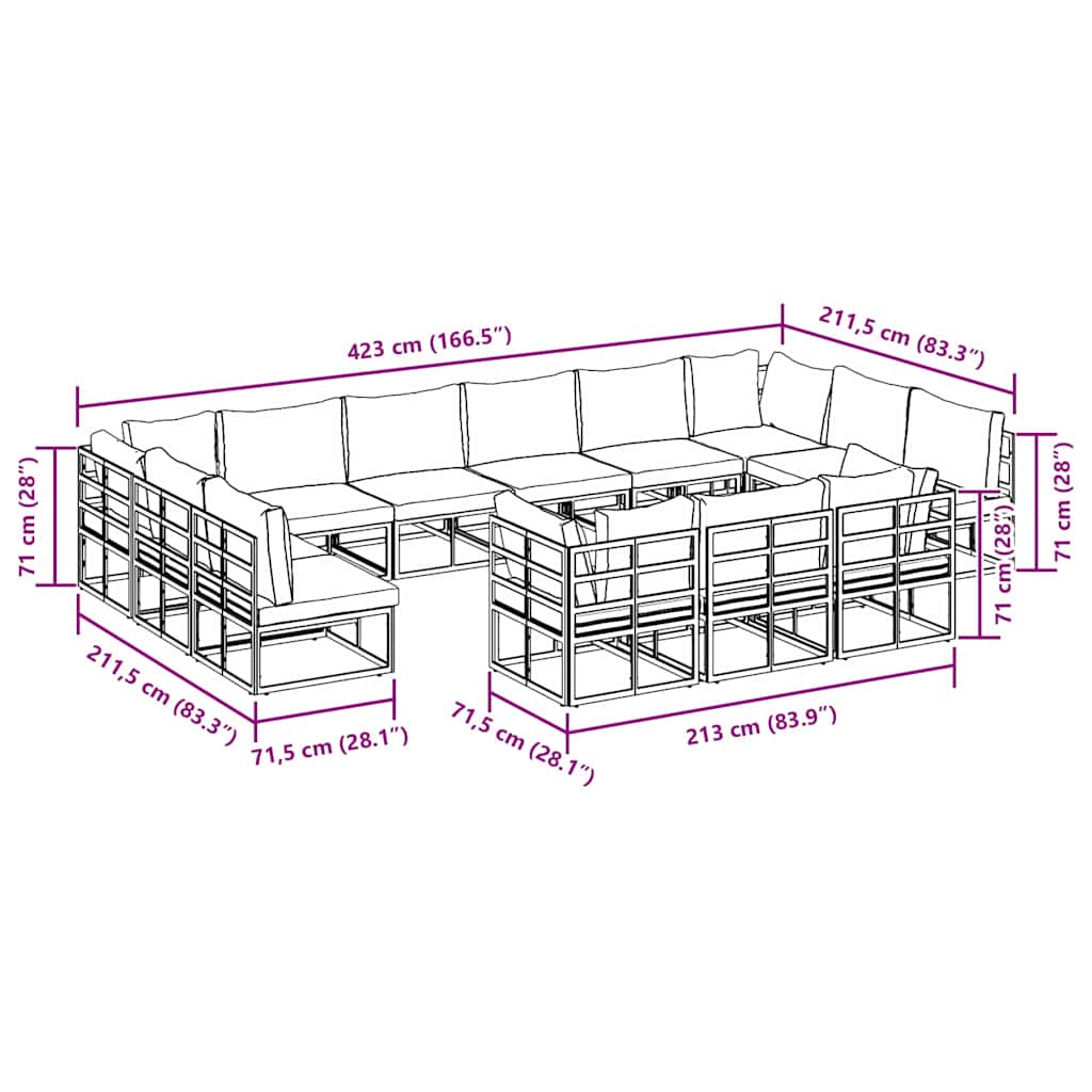 Garten-Sofa-Set 13 pcs Schwarz 423 x 211,5 x 71 cm Aluminium