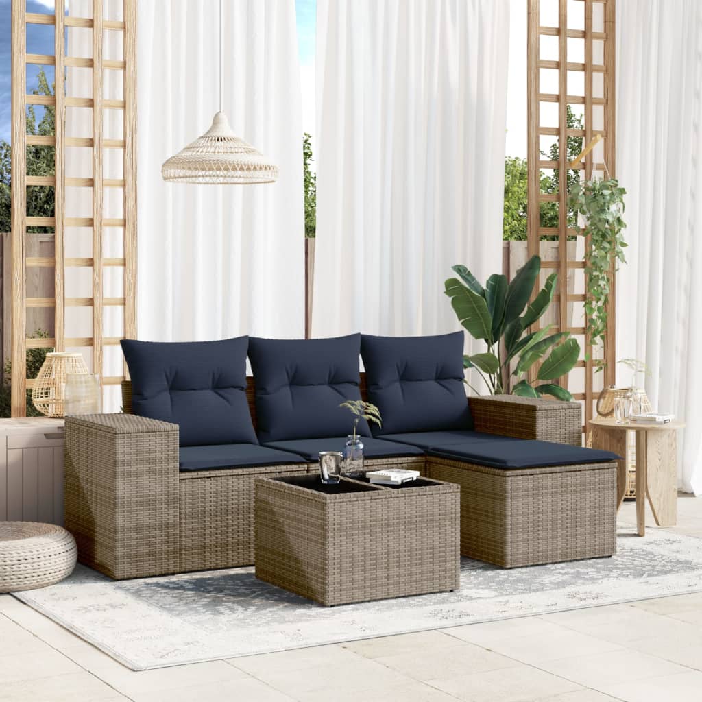 5-teiliges Gartensofa-Set mit Kissen, grau, Polyrattan