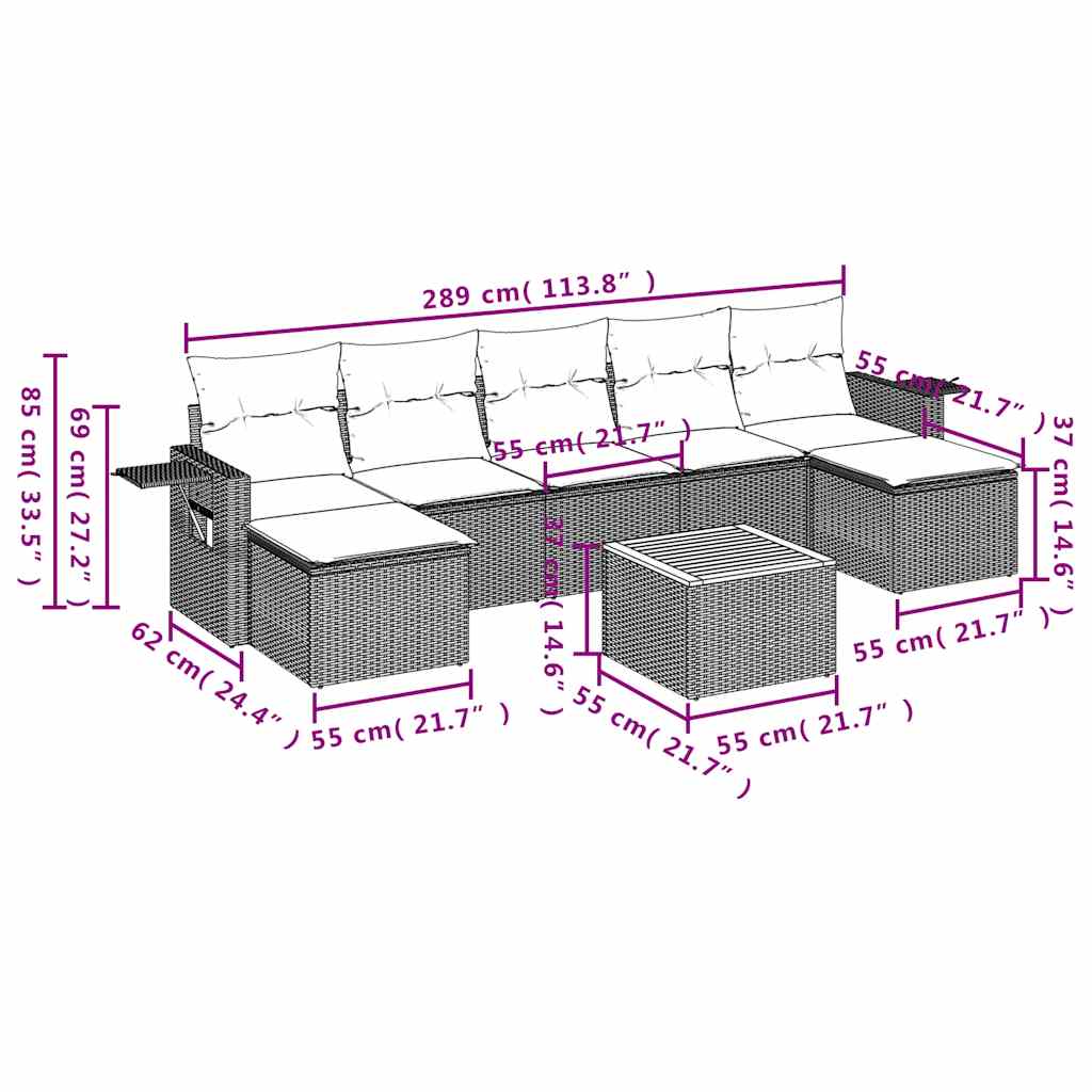8-teiliges Gartensofa-Set mit Kissen, grau, Polyrattan