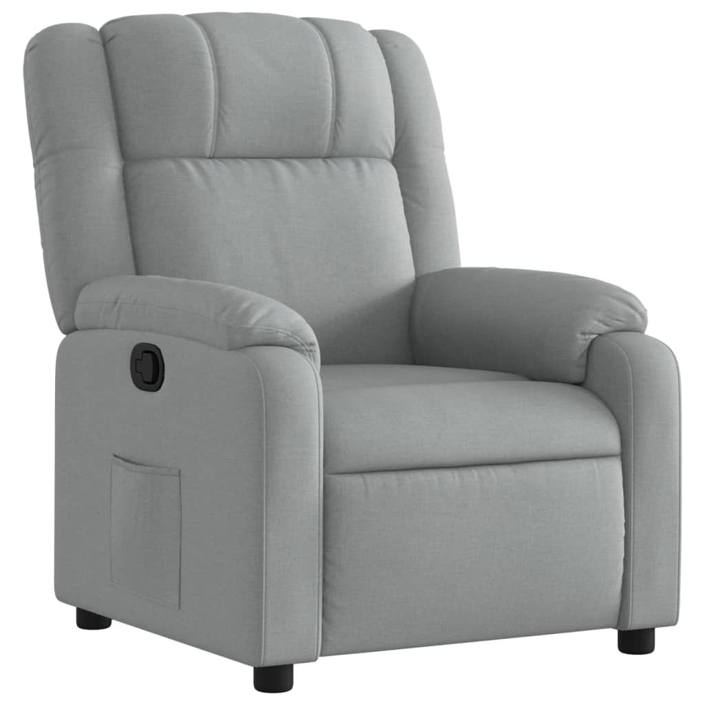 Lehnen Sie sich zurück und entspannen Sie sich in diesem äußerst bequemen Ruhesessel! Manuelle Liegefunktion: Dieser Ruhesessel verfügt über einen Griff auf der rechten Seite. Sie können die Fußstütze und die Rückenlehne durch einfaches Ziehen am Griff manuell in jede gewünschte Position bringen. Diese Funktion ermöglicht eine maximale Neigung von 135 Grad. Zusätzlich lässt sich die Rückenlehne durch einfaches Ziehen am Griff schnell in die Ausgangsposition zurückstellen.Bequemes Sitzerlebnis: Die dick gepolsterte Sitzfläche, Rückenlehne und die breiten, mit Stoff bezogenen Armlehnen sorgen für ein behagliches und warmes Sitzgefühl. Der Stoff besticht durch seine schlichte und klare Optik und ist atmungsaktiv und strapazierfähig.Praktische Seitentasche: Dieser Sessel verfügt über eine Seitentasche, in der Sie Ihre wichtigsten Gegenstände griffbereit aufbewahren können.Solider und stabiler Rahmen: Der Rahmen aus Holz und Metall sorgt für eine starke Struktur und Stabilität. Dieser Ruhesessel ist bequem und langlebig.